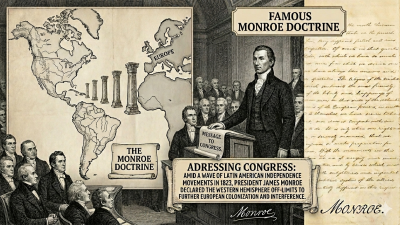 U.S. President James Monroe, addressing Congress amid a wave of Latin American independence movements in 1823, declared that the Western Hemisphere was off-limits to further European colonization and interference. The famous Monroe Doctrine.